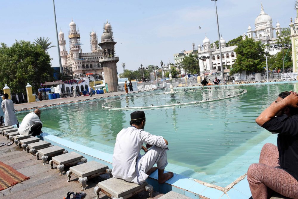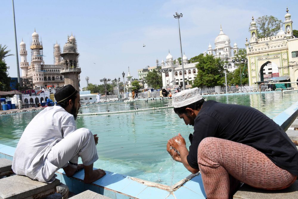 Amid high temperature, Muslims performing ‘vuzu’ for Friday prayers at Mecca Masjid